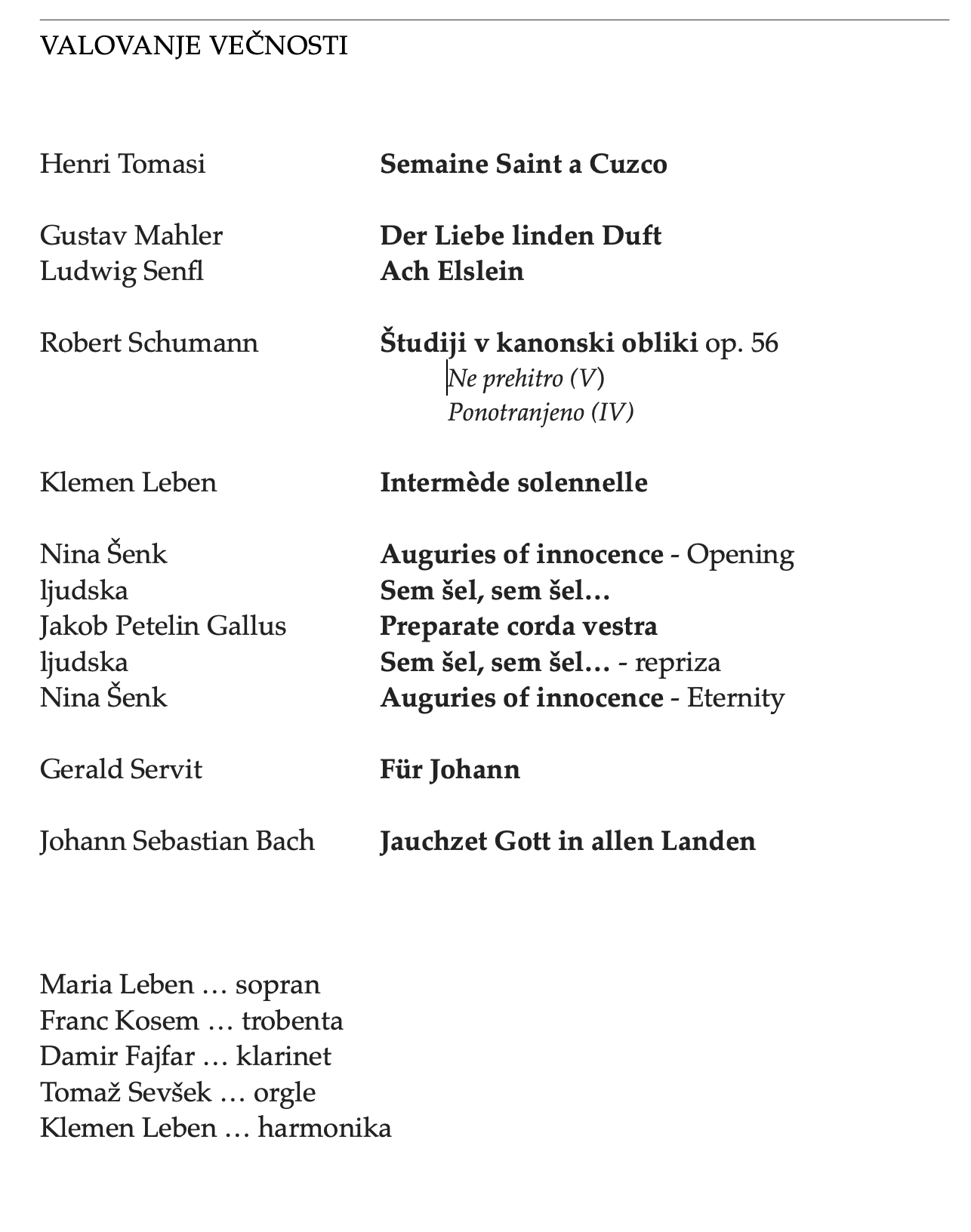 With music by Nina Šenk, Lojze Lebič and Klemen Leben